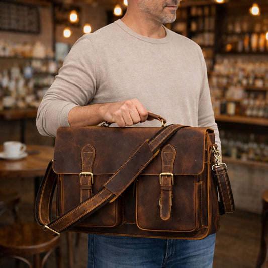 Classic Leather Bag for Laptop Men's Briefcase
