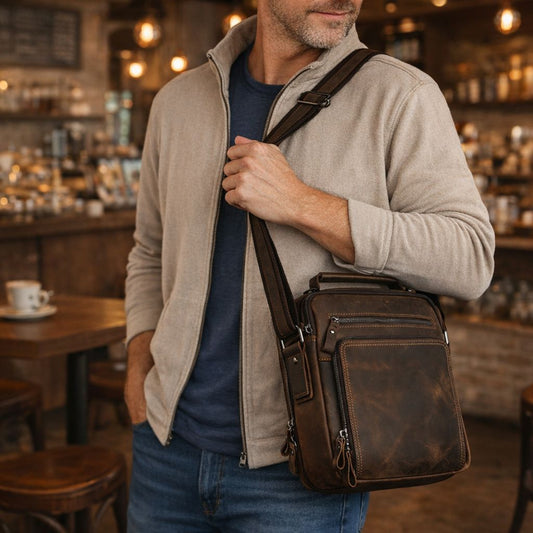 Genuine Leather Messenger Bag for Men - 9.7" iPad Crossbody Shoulder Bag