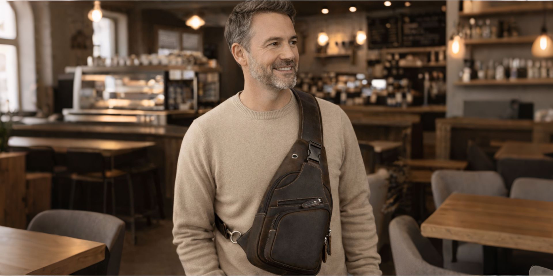 Men's Leather Crossbody Bag with USB Charging Port - Premium Cowhide Sling Bag