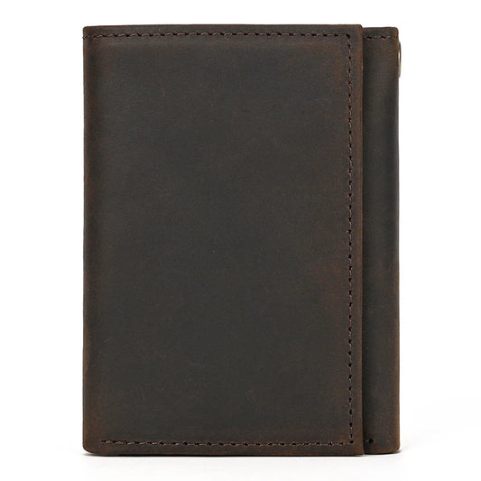 Mens Handmade Leather Trifold Wallet with Chain