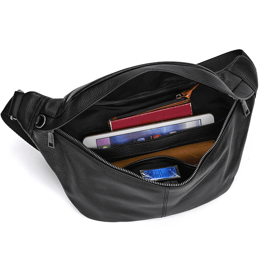 Stylish Black Leather Crossbody Bag Fanny Pack