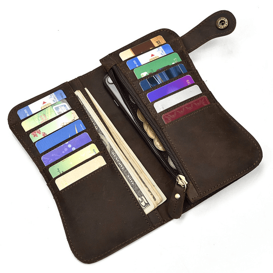Genuine Leather Bifold Long Wallet Snap Card Holder