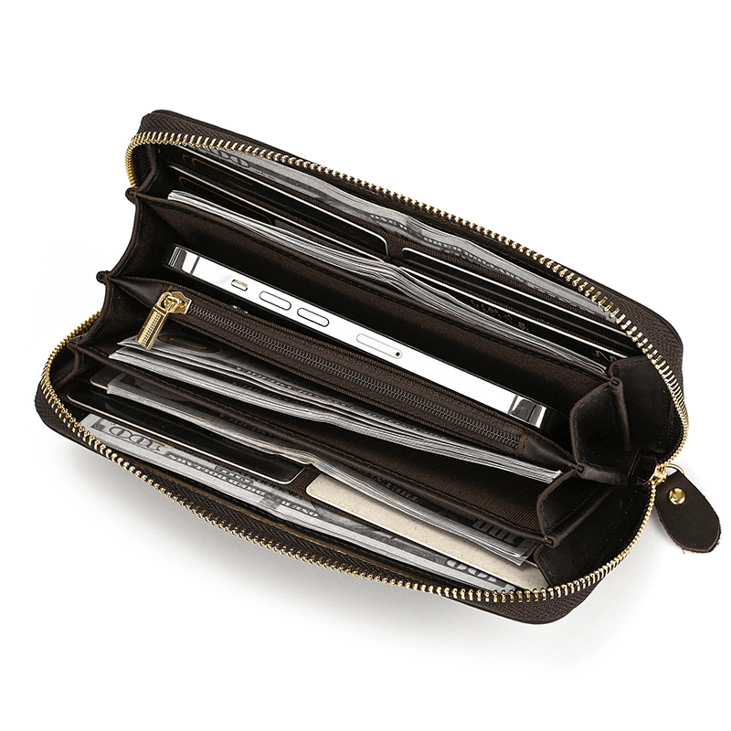 This long leather wallet is designed to keep your essentials neatly organized, featuring multiple card slots for credit cards, cash, coins, and even room for your phone. Its streamlined design ensures functionality while maintaining a sleek and polished appearance.