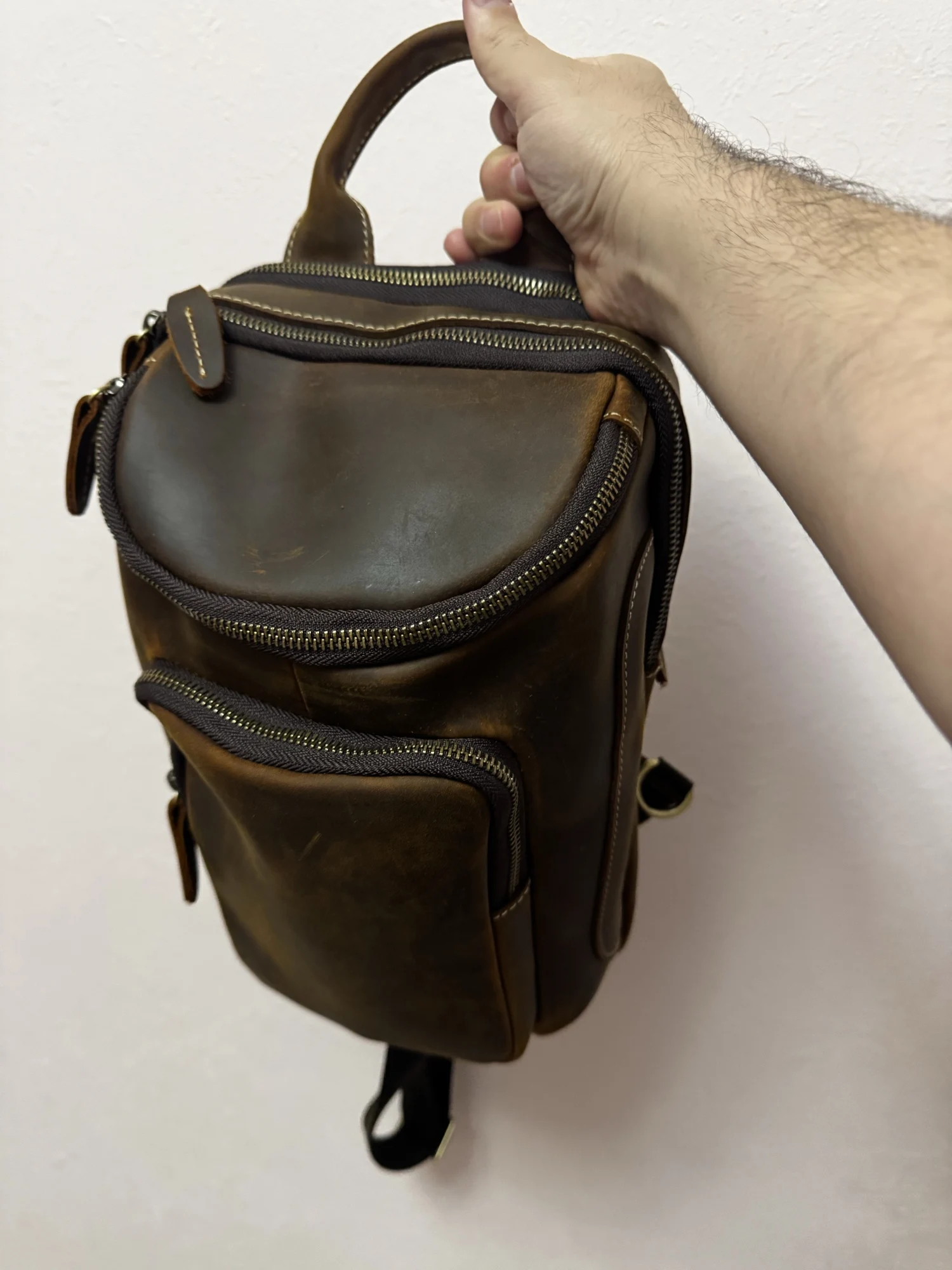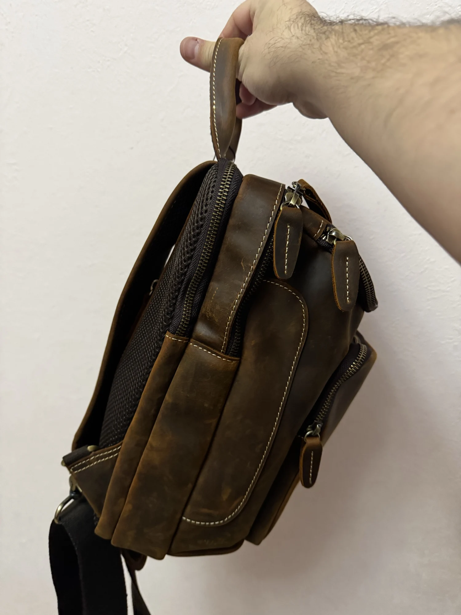 Stay organized and stylish with this men’s genuine leather sling bag, crafted for everyday convenience. Designed to fit a 9.7" iPad along with your phone, wallet, and keys, it features multiple zip compartments for easy access and an anti-theft pocket to keep your valuables secure. The breathable mesh back ensures comfort throughout the day, and the adjustable strap allows for left or right shoulder wear. Whether you're commuting, traveling, or running errands, this compact leather sling bag is the perfect blend of function, comfort, and timeless style.