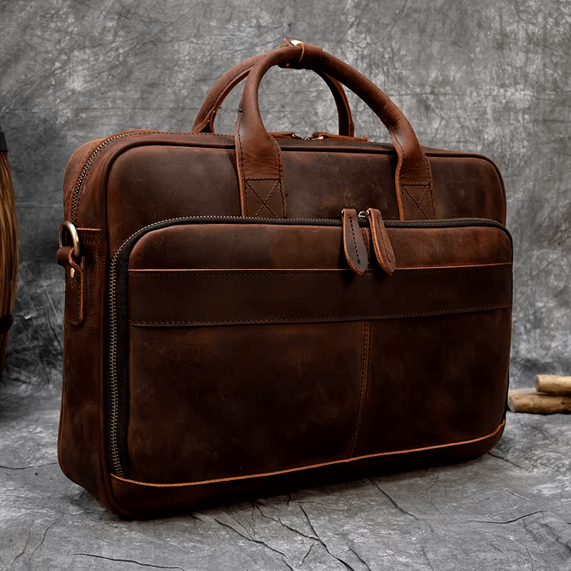 Equipped with a back strap to easily attach to luggage, this bag simplifies travel by keeping your hands free. The versatile carrying options allow you to use it as a shoulder bag or briefcase, with a detachable, adjustable strap for comfort. Crafted from premium leather and reinforced with durable metal hardware, this laptop bag is built to last and remains stylish over time. Perfect for professionals and frequent travellers, it also makes a thoughtful gift for any occasion.