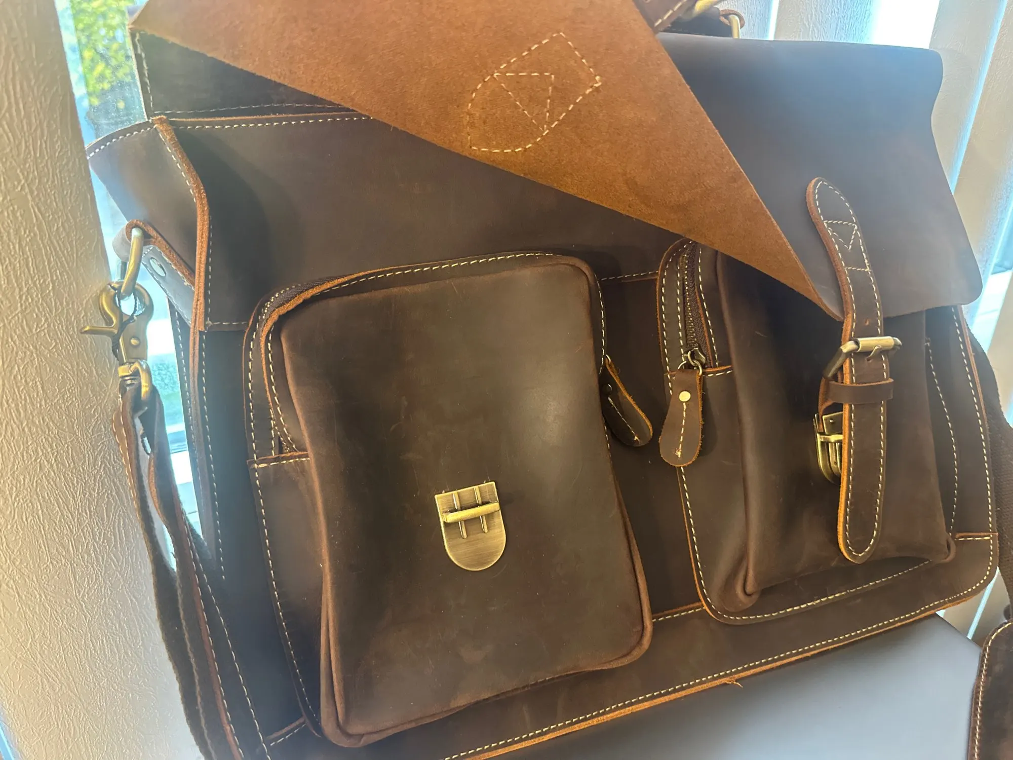 It is better than what expected clearly genuine leather with lots of room I believe it can even fit 2 laptop also shipping was around 12 days which is good time