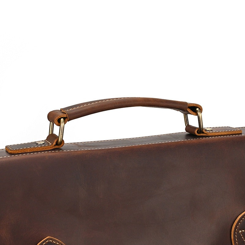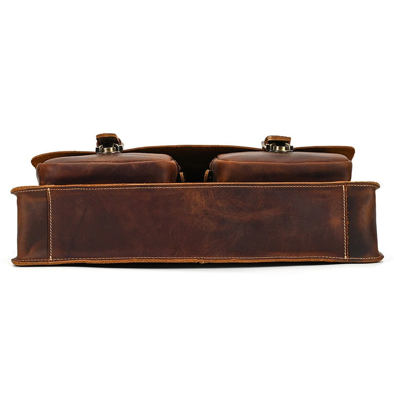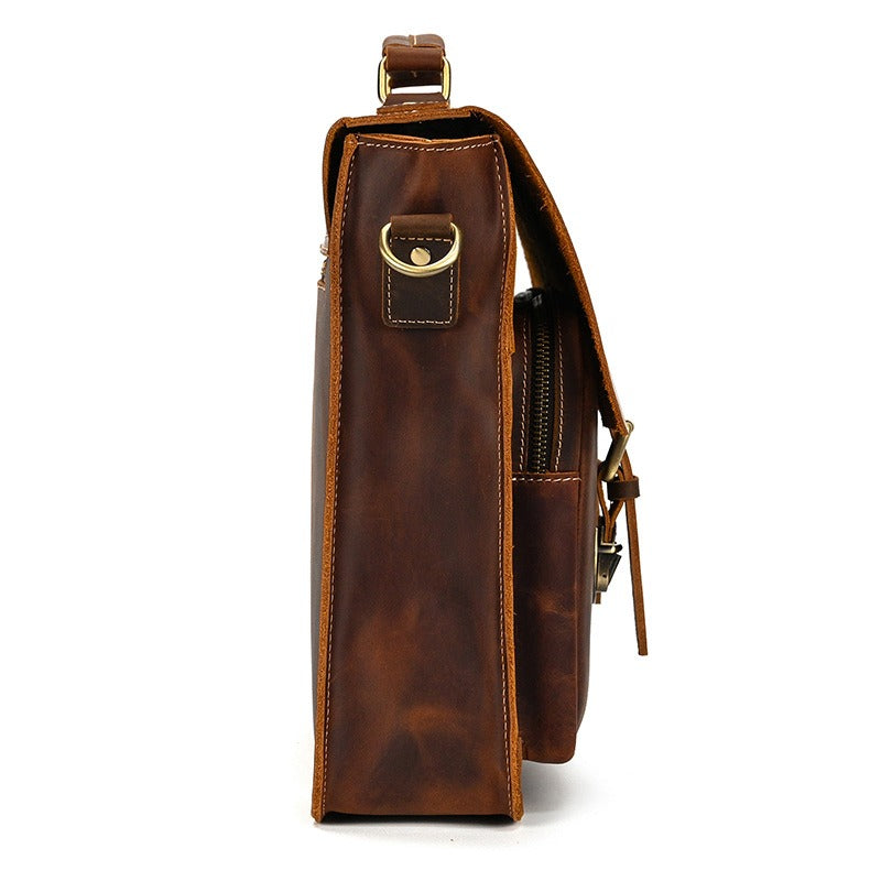 Crafted from premium cow genuine leather, this vintage-style messenger bag offers both elegance and durability. Designed to fit a 15-inch laptop, it features a spacious main compartment, multiple organizer pockets, and a secure anti-theft back pocket. With a comfortable shoulder strap and classic buckle closures, it’s ideal for work, travel, or business meetings.